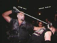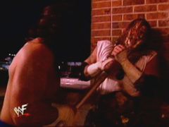 Al Snow is a true hardcore star. He shows that by choking Raven with a foreign object.