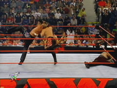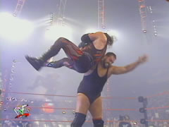 The Hurricane uses a neckbreaker on Chuck Palumbo. Yo, Palumbo, wuz up wit' that?