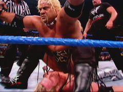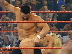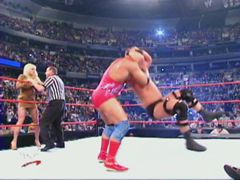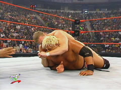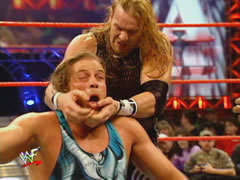 Triple H with his finisher, the "Pedigree". Kurt Angle didn't want to be in this position.