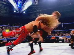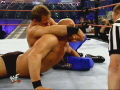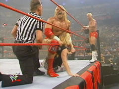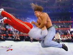 Steve Austin executes a beautiful "Stunner". Kurt Angle thinks otherwise.