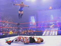 Rob Van Dam is flying off the top turnbuckle. He prepared a "Five Star Frog Splash" just for D-Von Dudley.